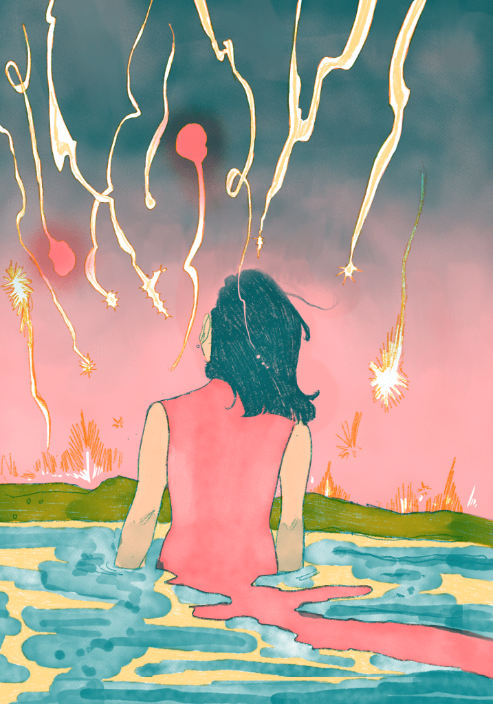 (risograph zine, printed in teal, flo. orange, and sunflower)